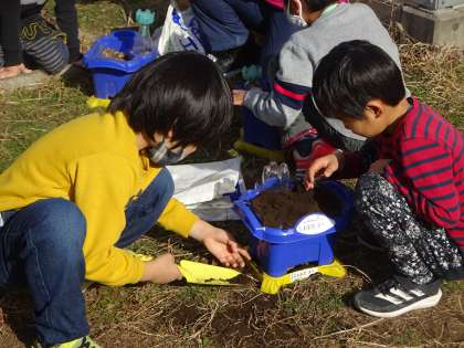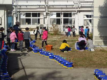 チューリップの球根を植えました。新しい1年生が入学する頃、きれいな花が咲くでしょう。そのときは、優しい上級生としての姿を見せてくれることでしょう。