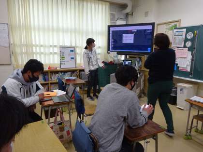 勤務時間外になりますが、少しずつICTのミニ研修を積み重ねています。ICT担当教員とその学年団が講師を務めています。授業での活用のあり方を探っています。今日は、ロイロノートに取り組みました。