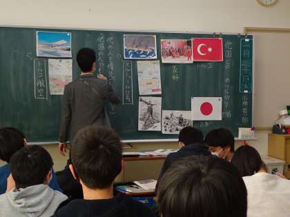道徳科の教科書教材「エルトゥールル号-日本とトルコとのつながり-」を用いて「他国との心のつながり」について考えました。エルトゥールル号の遭難を契機とした日本とトルコの交流を知り、どの国の人々も同じ人間として尊重し、国際親善に努めようとする心情を育てることをねらいとして取り組みました。