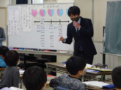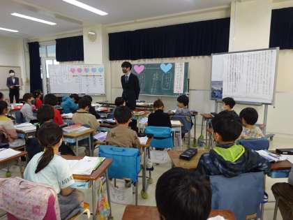今日は2年2組で国語科「スーホの白い馬」の研究授業が行われました。