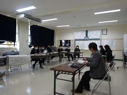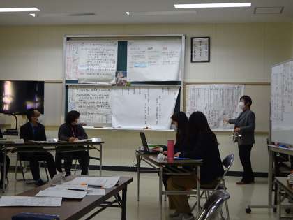 授業後には教職員で協議会を開きました。さらなる授業改善に向けて、教職員で意見交換を行い、よかった面や課題、改善策などを話し合いました。その後、講師からの指導を受けました。明日への授業につながるよい時間をもてました。