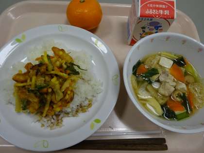 本日の献立 かきあげ丼 牛乳 吉野汁 みかん
