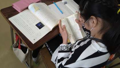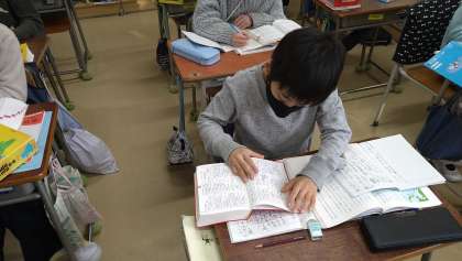 学年で「ワードバンク」の取り組みをしています。国語辞典で調べた語句をノートに貯金のように貯めていきます。授業中「いきますよ!」と言ったら、意味調べの合図です。一斉に辞書をひき、手をあげると順位を知ることができます。自分の出席番号と同じ順位だとラッキー!という、隠れたお楽しみもあります。