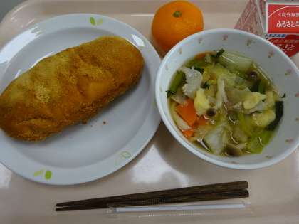 あげパン(きなこ) 牛乳 すいとん くだもの(みかん)