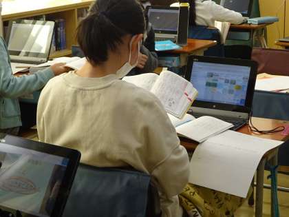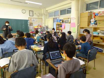 6年生には配布されたiPadですが、2月1日には4年生にも配布されます。今週の道徳では、動画「オンラインの安全」を視聴しながら、「ロイロノート」アプリも活用して、「インターネットの便利さを考える」をテーマに学習をしました。