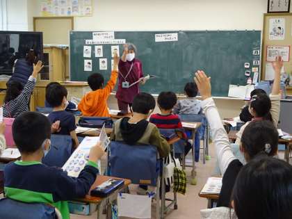 保健体育の学習で正しい手洗いや健康に良い環境について学習しています。今日は、養護教諭も講師として授業に関わりました。