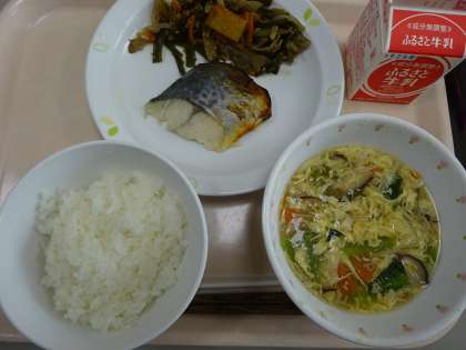 本日の献立 ごはん 牛乳 魚の西京焼き くきわかめのきんぴら