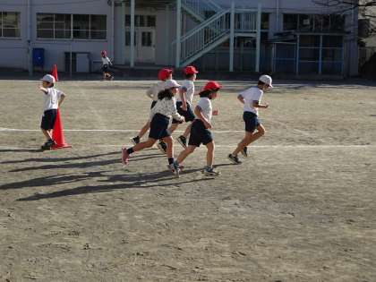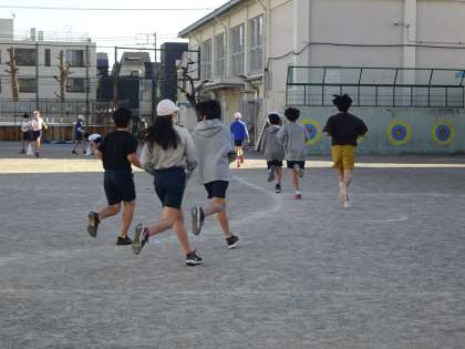 本来でしたら、朝、全校で「持久走」に取り組む時間を設定していたのですが、今年は感染症予防の観点から、取り組み方を変更しました。密にならない工夫をしながら、各学級の体育の時間初めに取り組んでいます。