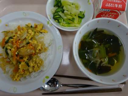 本日の献立 親子丼 牛乳 野菜のひとしお すまし汁