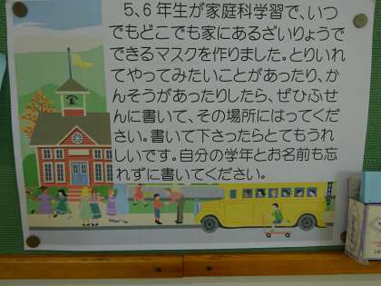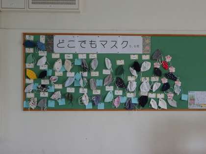 5,6年生が家にある材料でマスクをつくりました。学習したことを生かして、生活に役立つものが仕上がりました。
