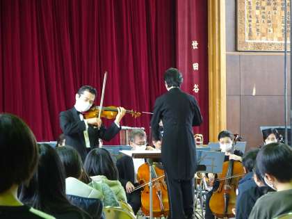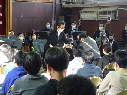 本校校歌をオーケストラ演奏していただき、録音されたCDをいただきました。大迫力の校歌です。