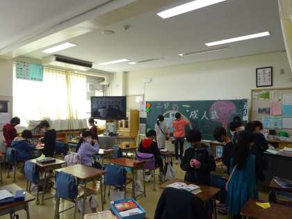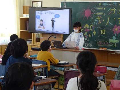 4年生が二分の一成人式を行いました。昔の自分について家族から取材し、今の自分を見つめ、未来の自分の夢を語るために、タブレットを活用してプレゼンテーションソフトにまとめました。この日のために、子どもたちが主体的に十分な時間をかけて準備してきました。一人一人がしっかりとしたスピーチを行いました。