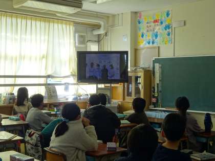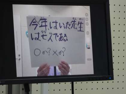 集会委員会児童による児童集会をテレビ放送で行いました。学校クイズが出されました。問題が出されると、あれこれ考え、答えが発表されると、どの教室からも歓声が上がりました。終わりの言葉の後には、教室から拍手が聞こえてきました。ほのぼのとした温かい児童集会でした。
