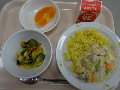 本日の献立 ドリア風ライス 牛乳 わかめサラダ せとか