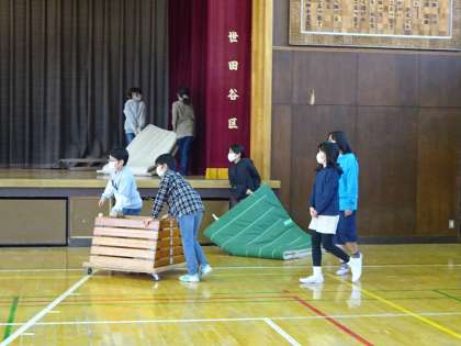 卒業式の会場づくりを5年生がしてくれました。すすんで仕事に取り掛かる5年生にでした。最高学年を引き継ごうとする気持ちが表れていました。