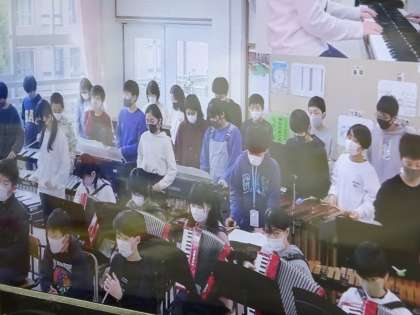 6年生が音楽の時間に取り組んだ合奏を動画に撮り、テレビ放送で流しました。1組は「ルパン三世」。寸劇も取り入れた楽しくてすてきな演奏となりました。