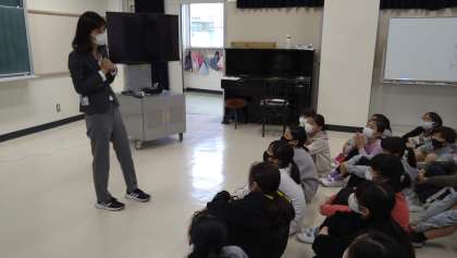 各担任の自己紹介で盛り上がった後、「どんな高学年になるか」という話をしました。4年生の時の「点灯式」での誓いを思い出し、これからの心構えを確認し合いました。大きくうなずいたり、しっかり顔をあげて話を聞いたり、立派な態度の85名です。1年間よろしくお願いします!