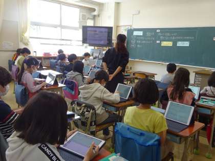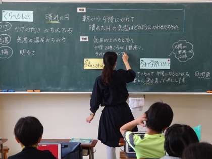 4年生の理科では「1日の気温と天気」の学習に入りました。今日は、担任からロイロノートで送られてきた、晴れた日の午前8時30分と午前10時の写真を比べて違いについて話し合いました。そして、「朝から午後にかけて、晴れた日の気温はどのように変化するか」について、生活している中での経験や今まで学習してきたことを根拠に予想したことをロイロノートのシートに表して提出しました。