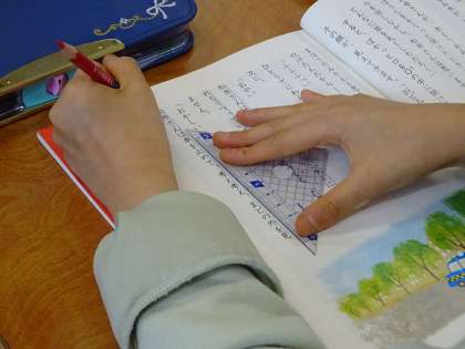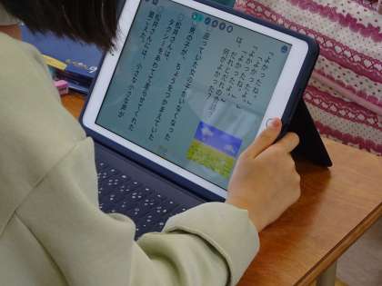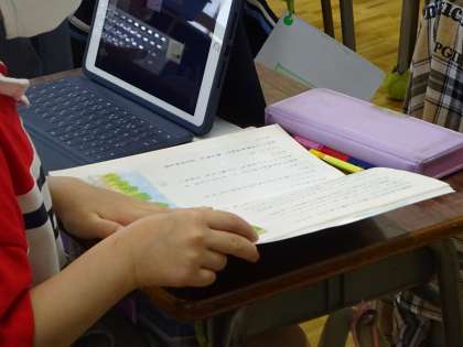 4年生の国語では、「白いぼうし」の学習を進めています。自分たちで問いを立て、課題解決の読み取りを進めています。「松井さん」の行動にサイドラインを引き、根拠を明らかにして自分の考えをロイロノートにまとめました。自分の考えと友達の考えをロイロノートで共有し、読みを深めていきました。