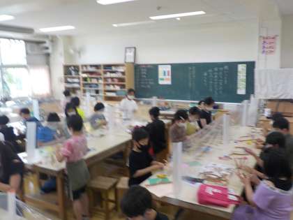 ボンドやステープラーでつなぎ合わせて、形をつくることを楽しみました。