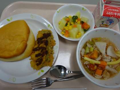 本日の献立 セルフフィッシュサンド 牛乳 レンズ豆入りミネストローネ