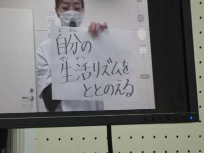 今日もテレビ放送による全校朝会を行いました。まず「なわとび上級指導員」に認定された児童への認定書授与、校長講話の後、看護当番から今週の週目標の話がありました。