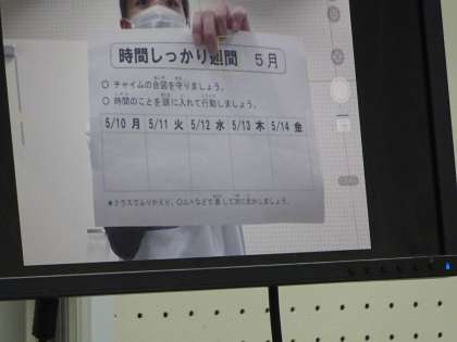 今週は「時間しっかり週間」です。時間を意識して行動していきます。各学級でその日の振り返りをしながら、次の日に生かしていきます。