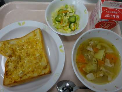 本日の献立 ツナトースト 牛乳 白いんげんの田舎風スープ