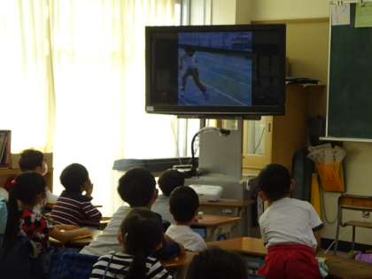 今日の体育集会は、運動委員会による「走り方のコツ」講座でした。速く走るためのコツをクイズ形式にしながら、実演も入れて作成されたビデオを各学級で視聴しました。