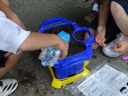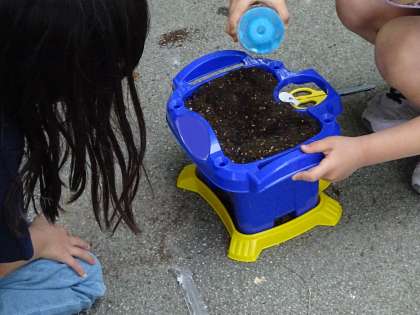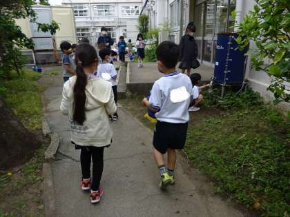 1年生があさがおの種をまきました。2年生が「先生」として、1年生とペアを組んで教えました。種のまきかた、水のあげかたなど、とても丁寧に教えていました。1年生も2年生の話をよく聞いて、上手に種まきをすることができました。すっかり仲良くなった1,2年生です。