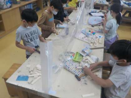 力の入れ方や釘の持ち方に少し緊張しましたが、少しずつ慣れて楽しくつくる姿がみられました。