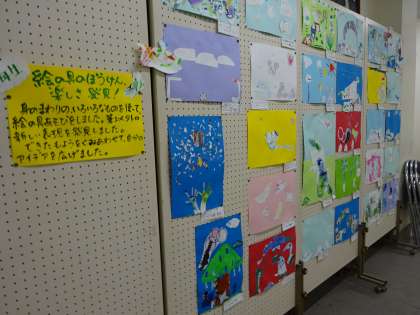 図工の時間に取り組んだ作品は、定期的に校内掲示されています。子どもたちが作品づくりに楽しんで取り組んでいる様子が伝わってきます。