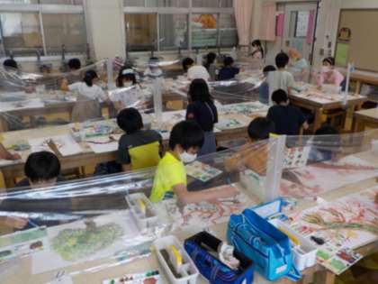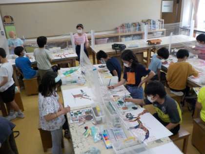 絵の具を混ぜてオリジナルの色を熱心につくりだす姿が多く見られました。