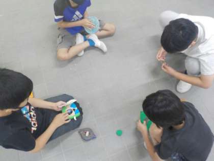 最終回では、実際に自分の作品を動かしたり、友達の作品を見たりする鑑賞活動を行いました。
