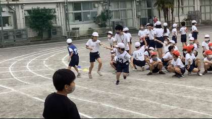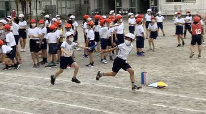 今日の体育の学習では、リレーの練習を行いました。前回のリレーで課題であったバトンパスを重点的に練習しました。チーム毎に集まって、作戦会議し、どうやったら上手くいくのか考えました。バトンパスを意識した後、4チームともタイムが縮まりました。本番までにどれだけタイムを縮めることができるか楽しみにしています。