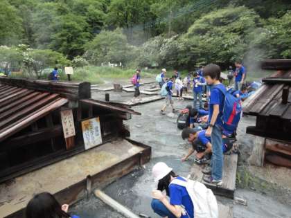 昨日は搾乳体験・バター作り等をしました。さらには今日のウォークラリーに向け、日光の自然について、日光自然博物館の方にレクチャーを受け、夜は肝試しをしました。