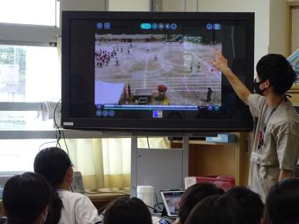 各学級で朝の時間を活用し、運動会リハーサルのときの全員リレーの様子をビデオで見て振り返りました。うまくできなかったところを確認し、どうしたらよいのか考えました。