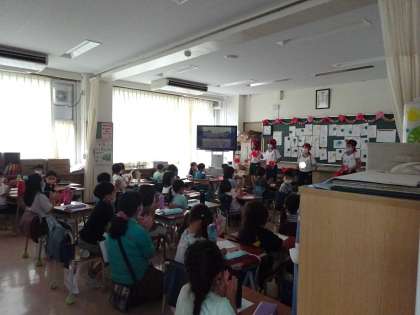 6年生の係活動の一つに応援団がありました。いつもの年のように、校庭での応援ができません。大きな声も出せません。応援の仕方を工夫しました。競技中は各教室を回って応援しました。