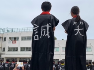 得点発表。まずは、百の位は両組とも「4」。次に一の位は白組が「5」で、赤組が「0」。さあ、十の位は、、、。僅差で今年の優勝は白組でした。どちらも力を尽くしました!