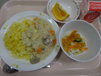 本日の献立 ドリア風ライス 牛乳 パリパリサラダ 甘夏みかん