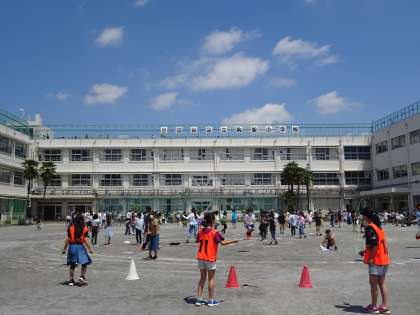 火曜日には高学年が、水曜日には低学年が中休みに検定に挑戦しました。練習してきた技を指導員や上級指導員、教員にみてもらいました。指導員や上級指導員は検定を見るほかにも、模範演技をして、みんなの技術向上に努めています。