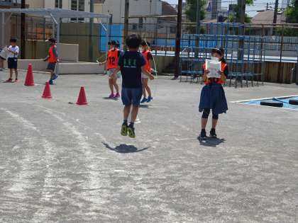 運動会でなわとび指導員、上級指導員の演技を見て刺激を受けて子どもたちです。