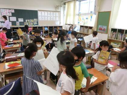 書いた後は、ノートを交換して読み合ったり、発表したりしてお互いの考えを交流し、考えを広げています。