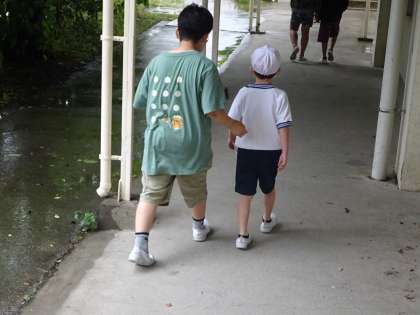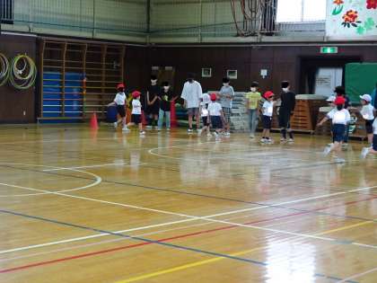 今年度は感染症予防対策をとって、体力・運動能力調査を実施しています。1年生の「20メートルシャトルラン」を6年生がお手伝いしました。6年生は日常的に1年生の朝の支度や掃除のお手伝いをしています。