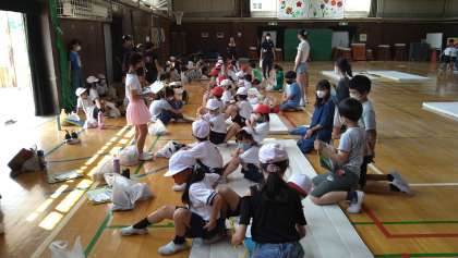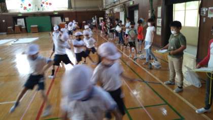 本日は、昨日に引き続き2年生と一緒です。スポーツテストのお手伝いをしました。昨日すっかり仲良くなったペアで行動します。優しく声をかけたり、「がんばれ!」と励ましたり、素敵なお兄さんお姉さんです。スポーツテストがスムーズにできたので、パソコン先生ができました!2年生の先生から「Siriの設定をお願いします」と依頼がありました。依頼にもすぐに応えられる頼もしい5年生です。