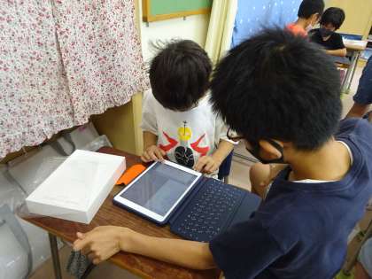 6年生は日ごろから朝の支度や掃除のお世話をしてあげています。大好きな6年生に教えてもらって楽しい時間を過ごした1年生です。これから少しずつ順を追ってiPadを活用して学習を進めていきます。