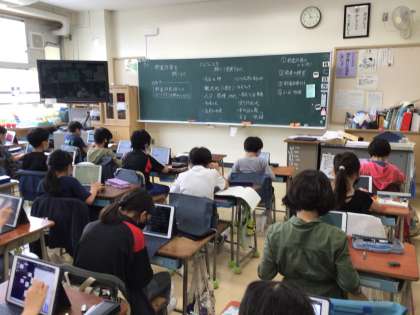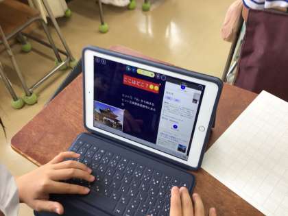 4年生の社会科では、47都道府県の学習をしています。一人一都道府県を担当し、その都道府県を紹介するカードをロイロノートで作成しています。観光地や特産物、気候などの様々な視点で調べて写真や地図などを使ってまとめています。カードが完成したら、発表会をしたいと思います。みんなが意欲的に取り組んでいます。発表会が楽しみです。