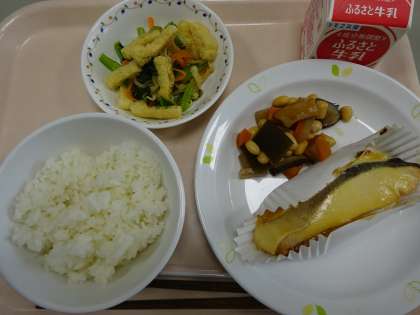 本日の献立 ごはん 牛乳 魚のみそマヨネーズ焼き おひたし 五目豆