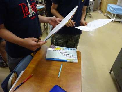 明日まで教育実習生が来ています。今日は6年生で研究授業が行われました。国語の「言葉を選んで、短歌を作ろう」の単元で、「たのしみは」の短歌を作り、短冊に丁寧に書きました。
