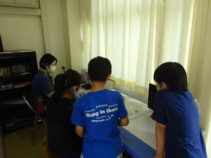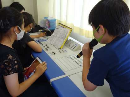 毎日、給食の時間には、放送委員会が「お昼の放送」をしています。日ごとに担当を決め、クイズやその日のトピック、占い、音楽等を計画し、放送原稿をしっかり用意して放送しています。給食の時間は、感染症対策として、パーティションで机周りを囲い、前を向いておしゃべりなしで食べています。その中でのお昼の放送は、子どもたちにとって楽しみの一つになっています。
